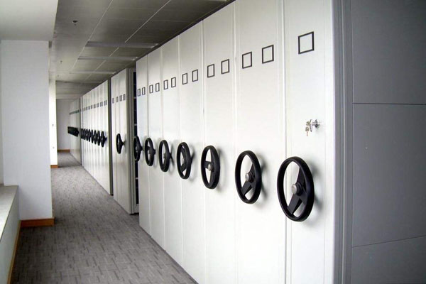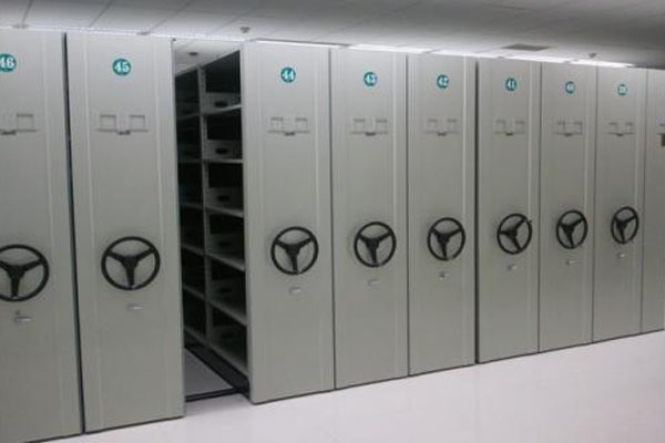 3、密集架為框架結(jié)構(gòu):由底盤、雙柱、擱板及支承板、頂板、護(hù)板、門面、傳動(dòng)機(jī)構(gòu)、道軌、防震裝置及防塵、防鼠裝置等部分組成。
