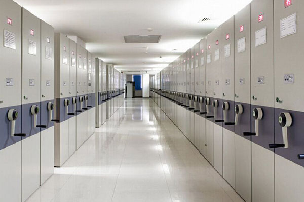 7、手搖移動(dòng)密集架各列之間裝有磁性吸力的橡膠密封條裝置,該密封條經(jīng)防老化處理。在架體頂部裝有防塵板,底部裝有防鼠檔、合攏后無(wú)縫隙,達(dá)到了防火、防塵、防鼠、防倒的要求。