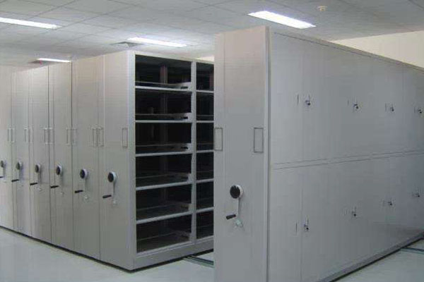 手搖移動(dòng)密集架,是一種家庭使用柜,由底盤(pán)、立柱、擱板及支承板、頂板、護(hù)板、門(mén)面、傳動(dòng)機(jī)構(gòu)、道軌、防震裝置及防塵、防鼠裝置等部分組成。