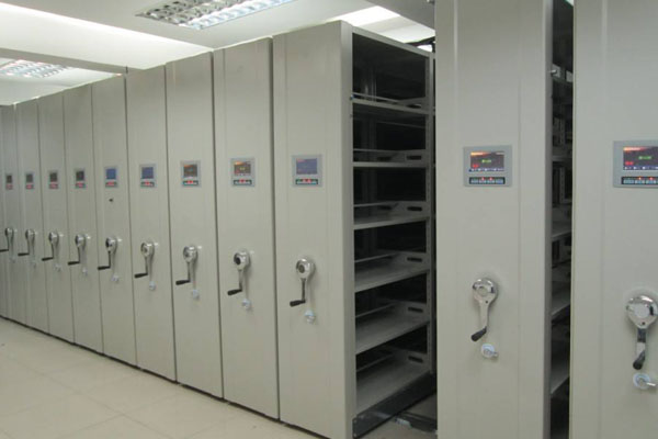 手動密集架主要由軌道、架體、底盤三部分組成,具有載量多,使用方便等特點,主要用于檔案資料、證券憑證等的存放。